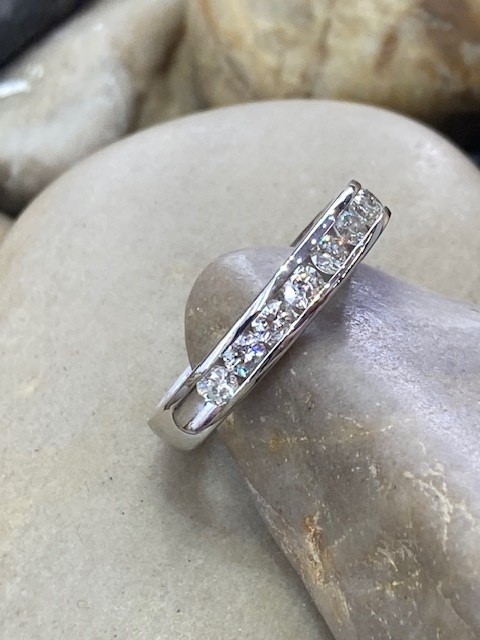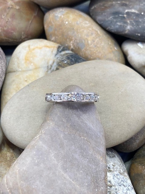 The diamonds have a total weight of 1.00 carat, carefully matched for consistency with I1 clarity and H to I colour, offering beautiful sparkle and balance across the band. With a total ring weight of 4.802 grams, the piece has a comfortable yet substantial feel.