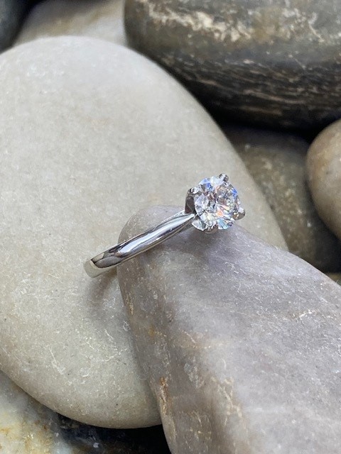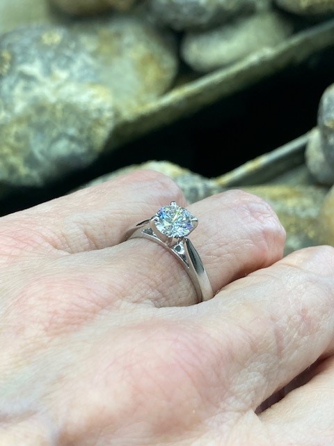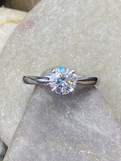 Timeless elegance meets refined craftsmanship in this classic solitaire ring. Expertly crafted in luxurious platinum, the setting showcases a stunning 0.87 carat mined diamond that radiates brilliance from every angle. With a clarity grade of VS2 and a beautiful H colour, the diamond strikes the perfect balance between purity and warmth, offering exceptional sparkle and value. Designed for those who appreciate understated sophistication, this ring is a perfect choice for any platinum lover seeking a piece that will never go out of style.