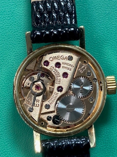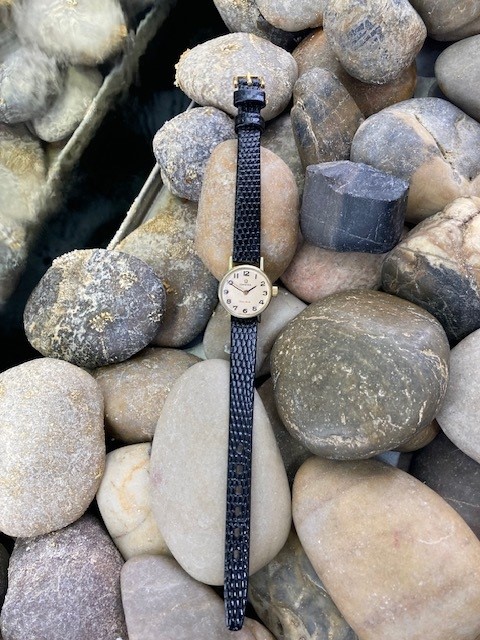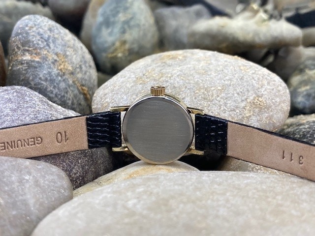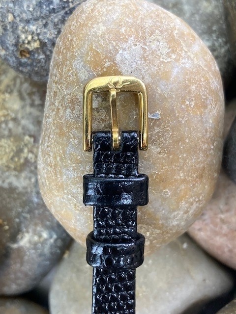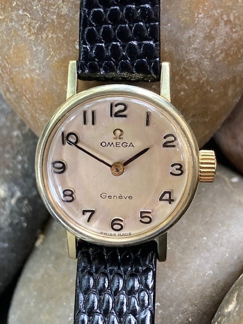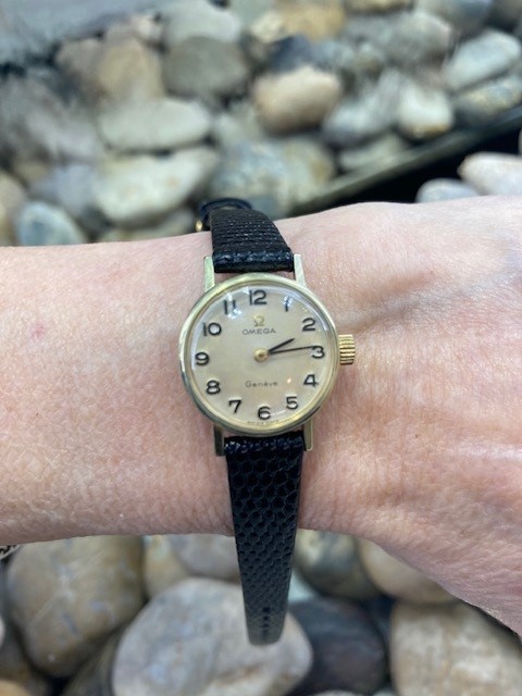This elegant vintage ladies’ Omega Genève from the 1960s is a timeless expression of classic Swiss watchmaking. Featuring a delicate 20mm gold plated case, this piece has a precise manual wind calibre 620 movement that has 17 jewels. Identified by reference number 511.213. The watch is paired with a sophisticated black lizard grain leather strap, finished with a genuine Omega buckle, adding an extra touch of authenticity and refinement making it a true collector’s treasure.