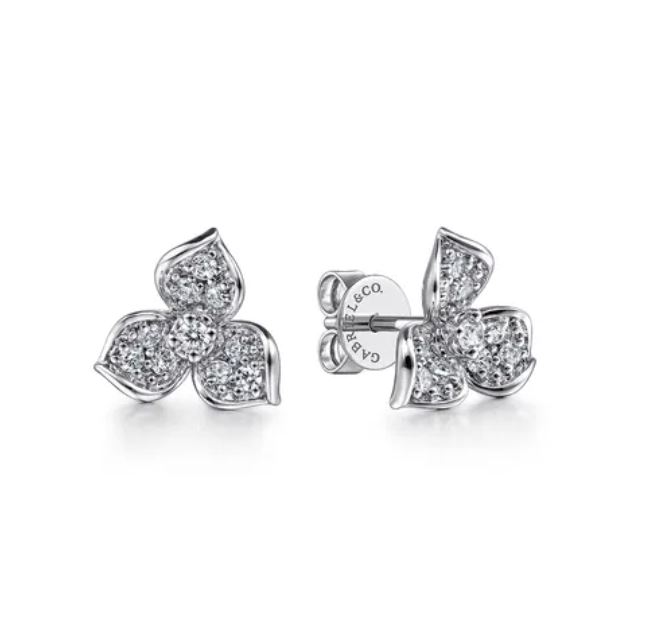 Unleash the beauty of nature with our 14K white gold diamond flower stud earrings, featuring a delicate arrangement of three sparkling petals around a center diamond. Boasting 0.20 cts of shimmering radiance, these earrings are an exquisite masterpiece of intricate craftsmanship. Let these floral beauties add a touch of glamour and elegance to your look, making you feel like a true natural wonder.