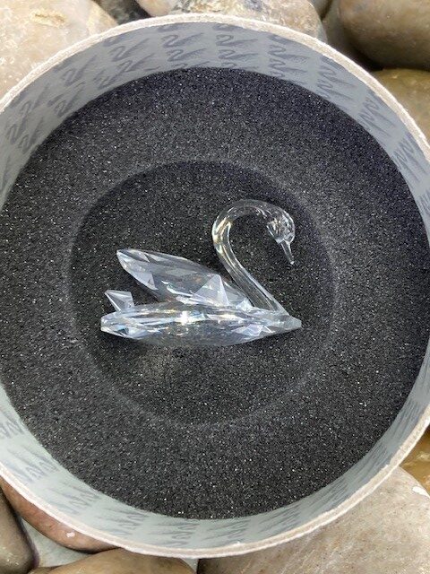 The very small swan measures 1 ¾ to 2 inches depending on the way it is measured. Part of the Animals collection from the 1980’s.