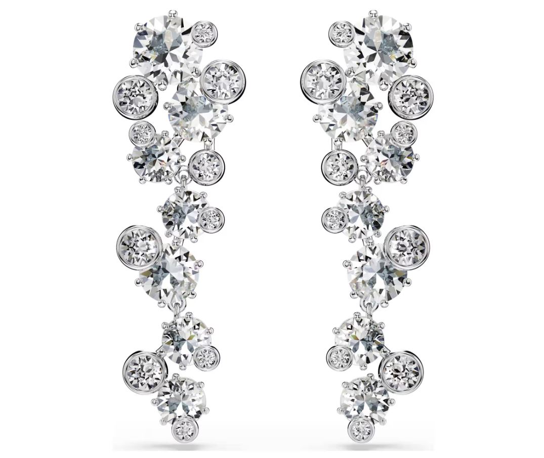 Illuminate your style with these light-catching Constella earrings. Inspired by a universe of stars, the rhodium plated strands feature clear crystals in various sizes, each presented in a prong or bezel setting. Wear them alongside the matching Constella necklace to maximise the radiance in your wardrobe.