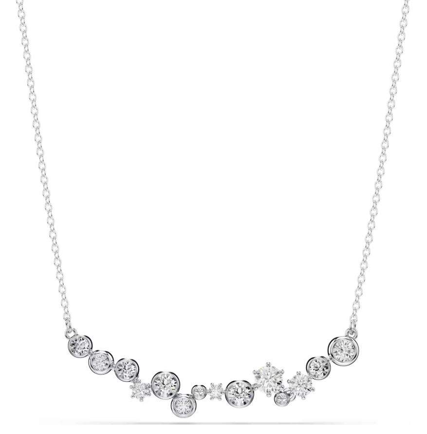 Energise your everyday wardrobe with this stunning Constella necklace in rhodium plating. The starry design features a central display of clear crystals in various sizes, each presented in a prong or bezel setting. This gleaming arrangement is set on a delicate chain and provides a perfect showcase of cosmic wonder.
