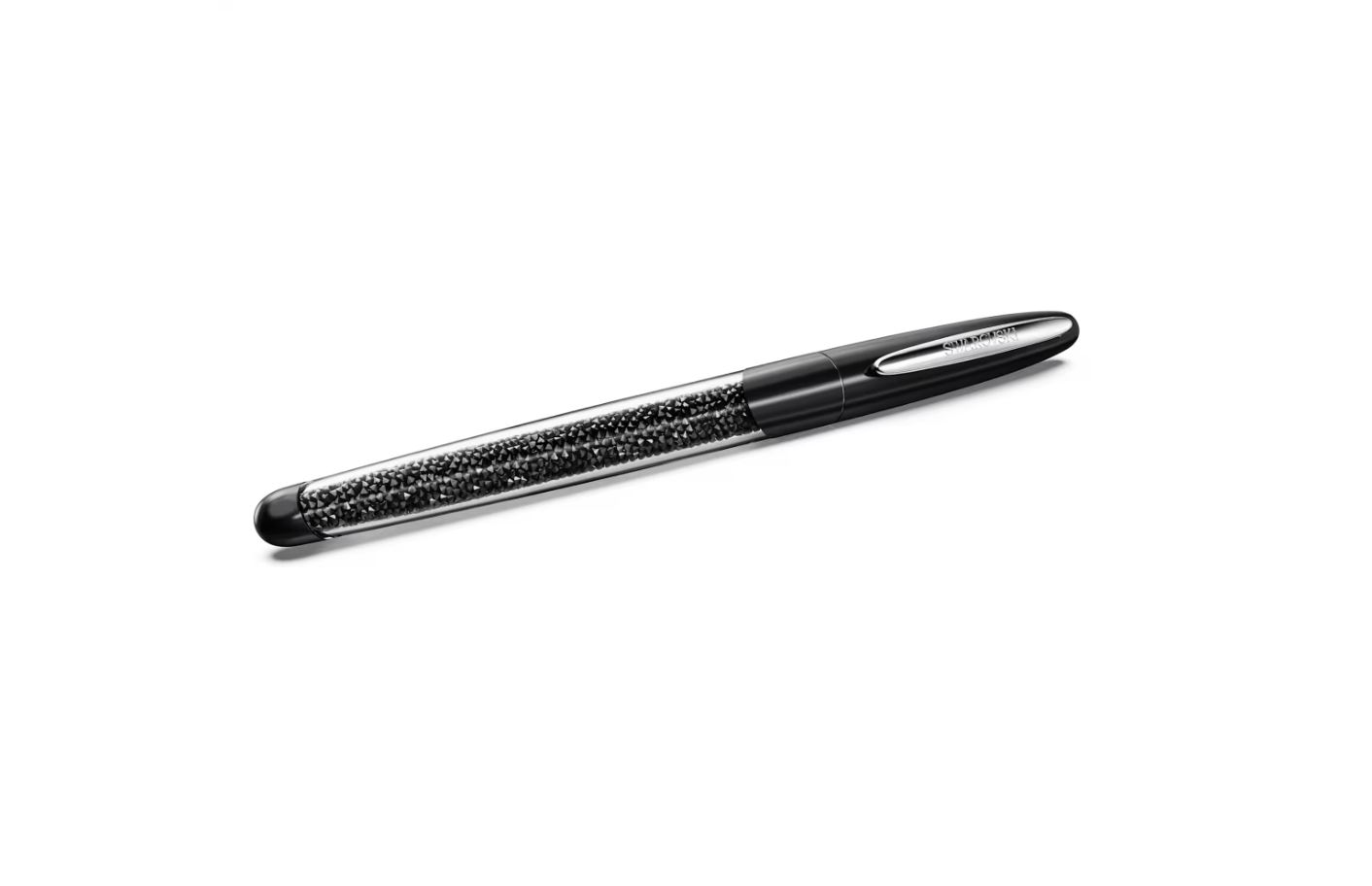 Much more than just a writing instrument, this Crystalline rollerball pen is filled with approximately 400 black crystals using the unique Crystalline technique. A silver-tone plated clip helps to enhance the glossy barrel and cap in black. This slimline rollerball pen would make a thoughtful gift. Black and blue ink refills are available to buy in Swarovski stores.