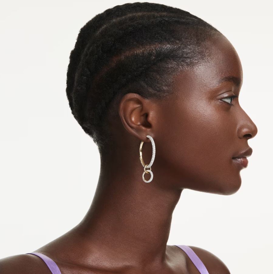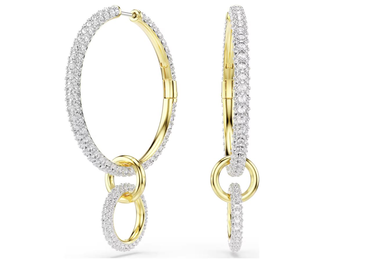 Dextera hoop earrings Round cut, White, Gold-tone plated