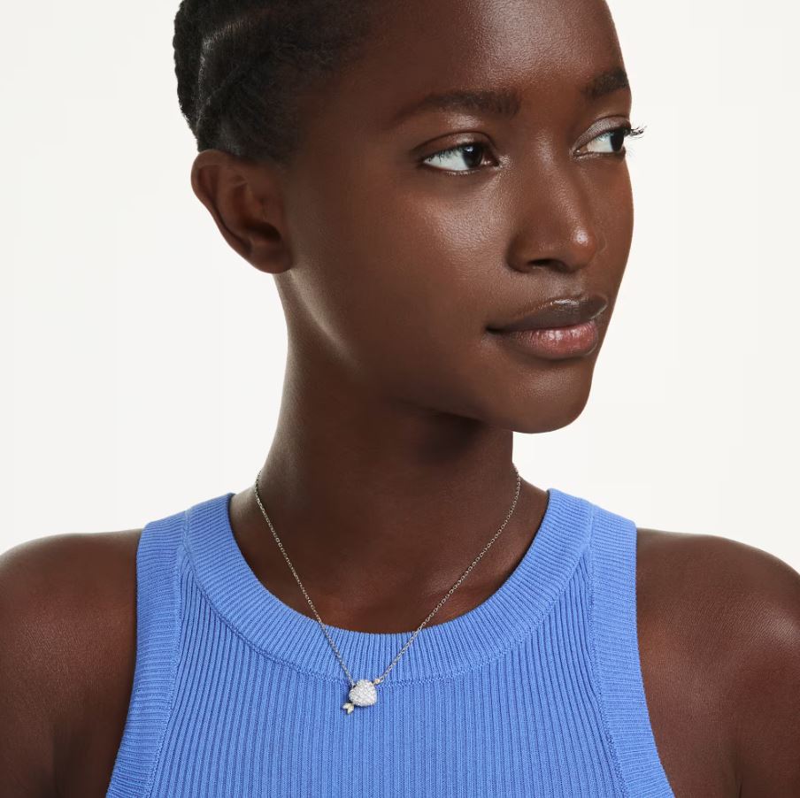 Idyllia pendant Mixed cuts, Heart with arrow, White, Mixed metal finish