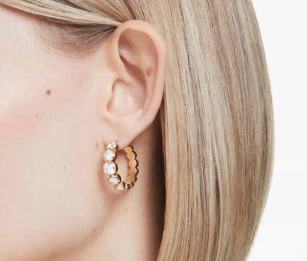 Maximise your elegance with these radiant mini hoops. The gold-tone plated pieces are masterfully crafted with a circle of round-cut Swarovski Zirconia, each placed in a modern bezel setting and presented in a gradient of sizes. A perfect pair for everyday sophistication, or a glowing choice for evening glamour.