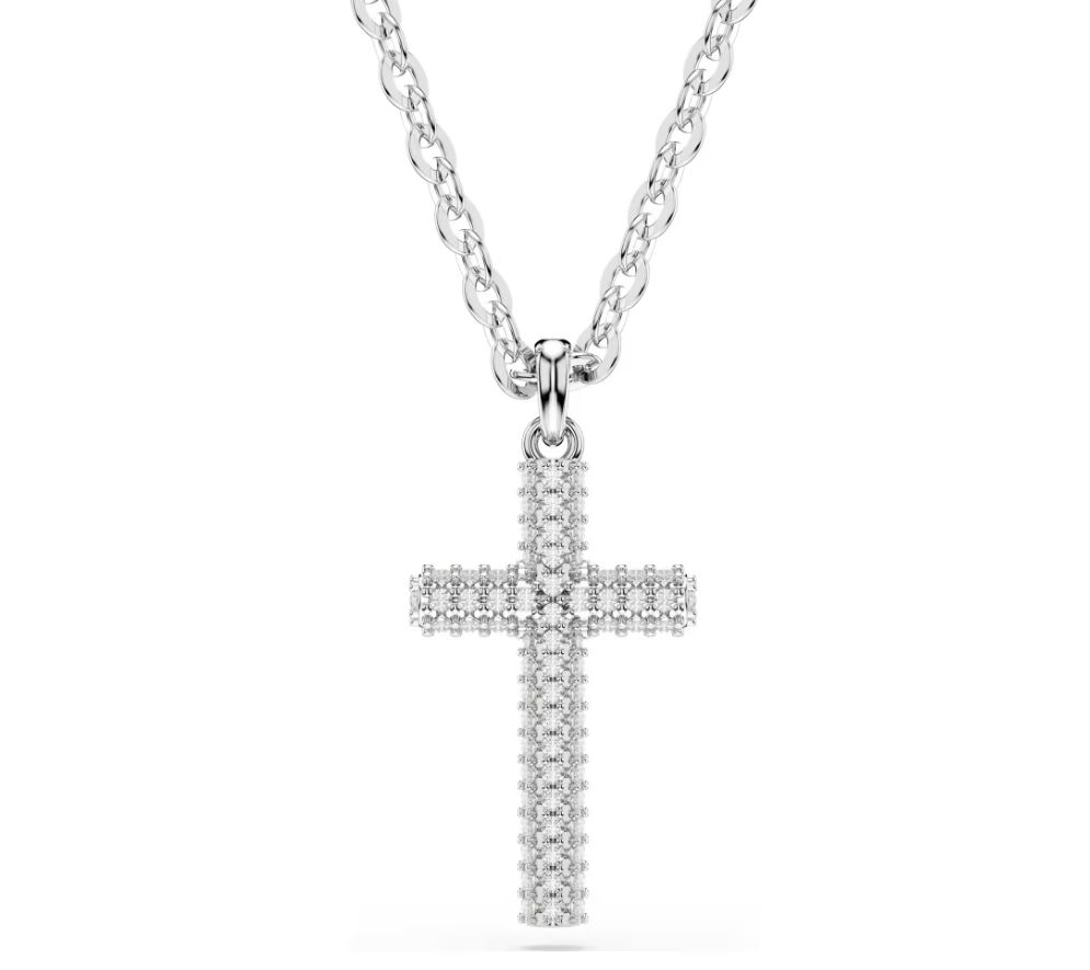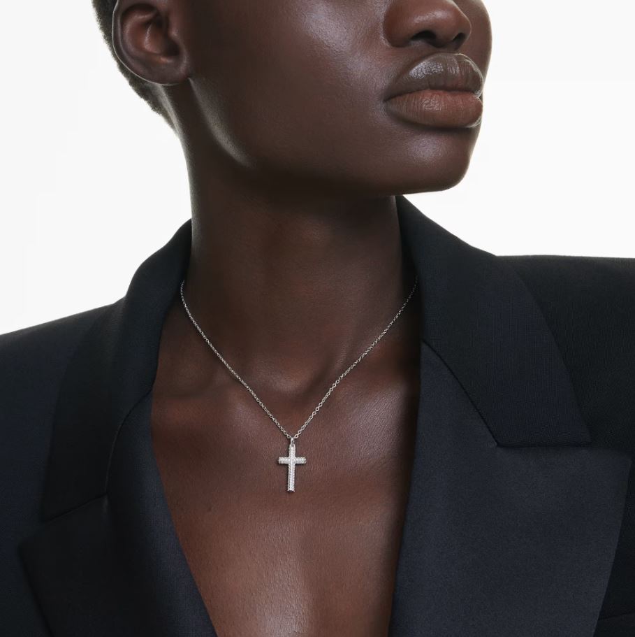 Insigne pendant Pavé, Cross, White, Rhodium plated