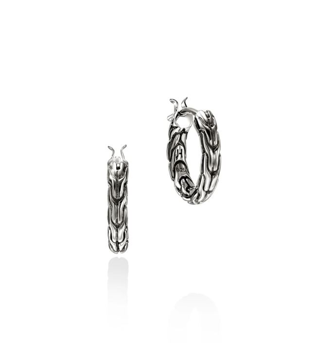 The perfect hoops. Artisan handcrafted in reclaimed sterling silver inscribed with the iconic JH chain motif.