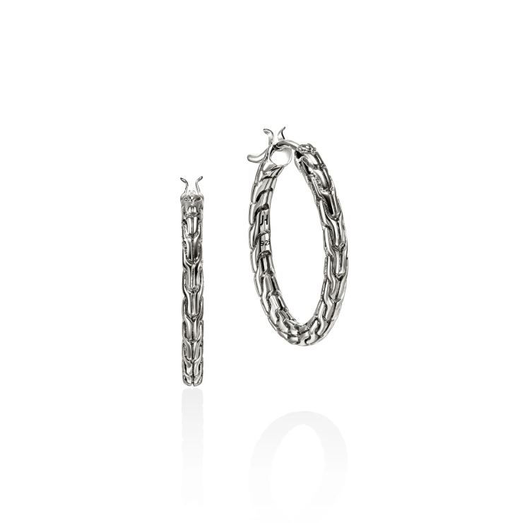 The perfect hoops. Artisan handcrafted in reclaimed sterling silver inscribed with the iconic JH chain motif.