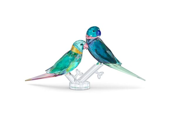 This magnificent pair of crystal parakeets brings to life the vivid colouring of this lively parrot species. Symbolising friendship and love, the two birds perch on a clear crystal branch. With a total of 732 pastel-coloured facets, this vibrant design is crafted entirely from crystal, showcasing Swarovski’s unique artistry. It brings tropical hues and modern style to any interior, and would make a wonderful gift or collector’s piece. Decoration object. Not a toy. Not suitable for children under 15.