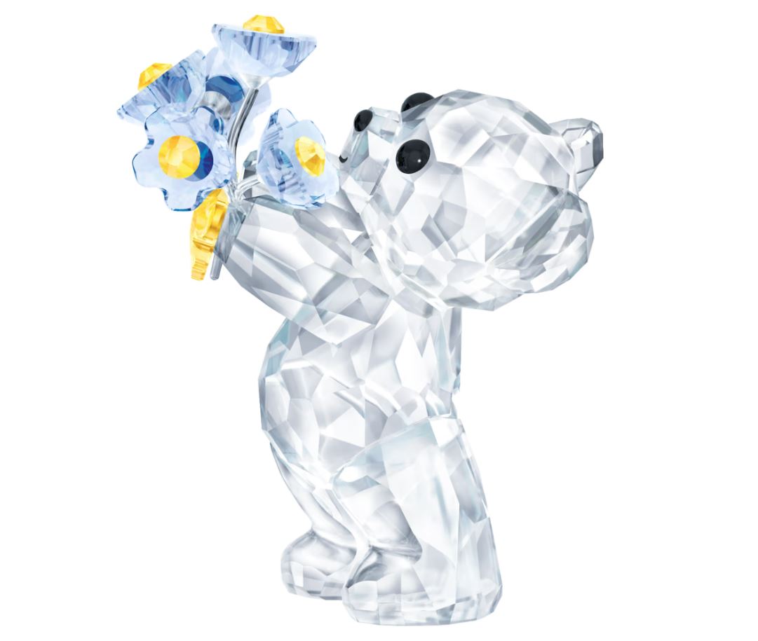 Swarovski’s Kris Bear collection is loved all around the world for its cute, cheerful characters. Carefully crafted with 599 sparkling facets, this edition sweetly presents a bunch of forget-me-not flowers. Full of colour and emotion, it would make a meaningful gift for someone special. Decoration object. Not a toy. Not suitable for children under 15.