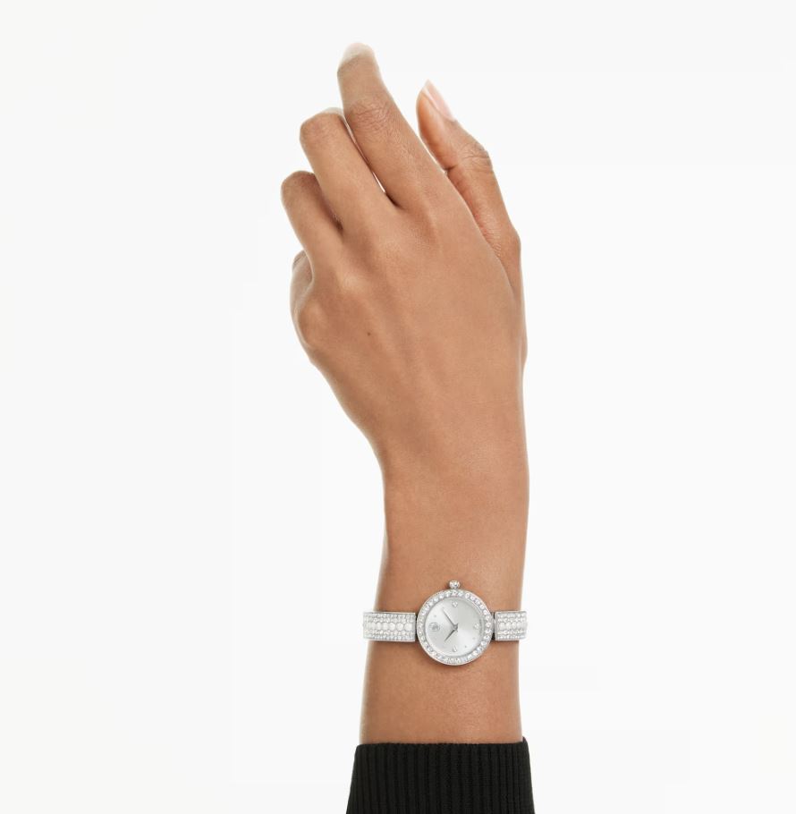 Matrix pearl bangle watch Swiss Made, Crystal bracelet, White, Stainless steel