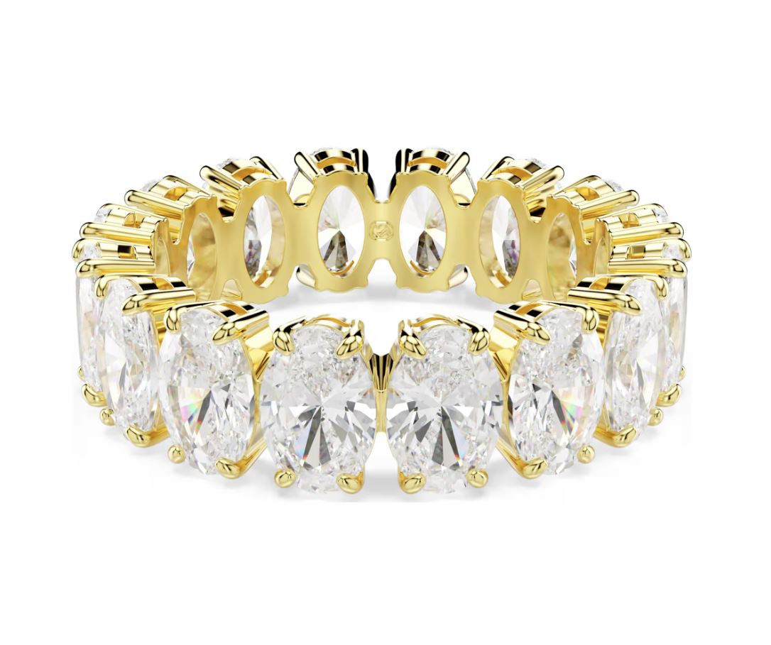 With a full circle of oval-cut Swarovski Zirconia, this Matrix ring delivers a look that is both unique and luxurious. The stones are placed within a refined prong setting that is 18k gold finish for a radiant and glowing effect. Wear this ring as one of your go-to favourites when personal expression is called for.