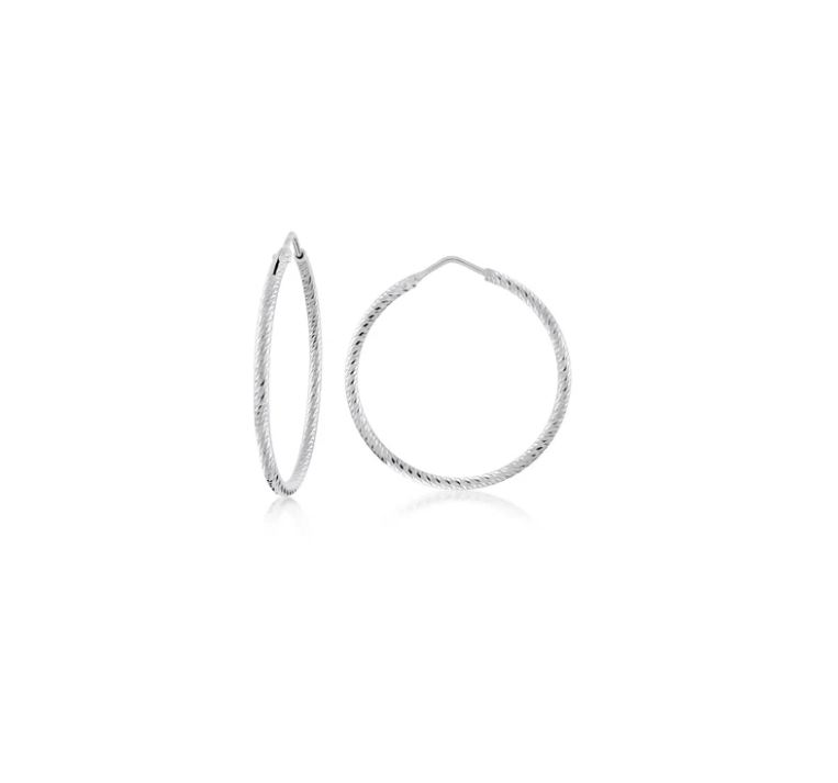 Medium Diamond Cut Hoops in White