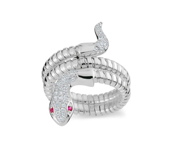 Mini Serpentine Double Wrap Ring in White with Red Eyes