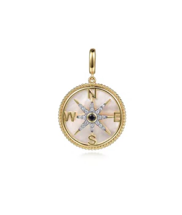 Preorder – 14K Yellow Gold Diamond Blue Sapphire Compass Medallion Pendant with Detachable Bail