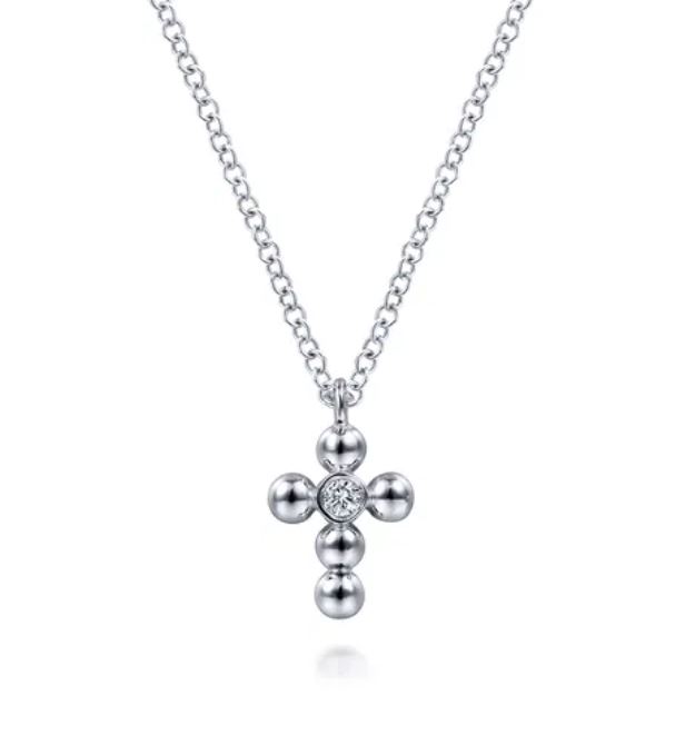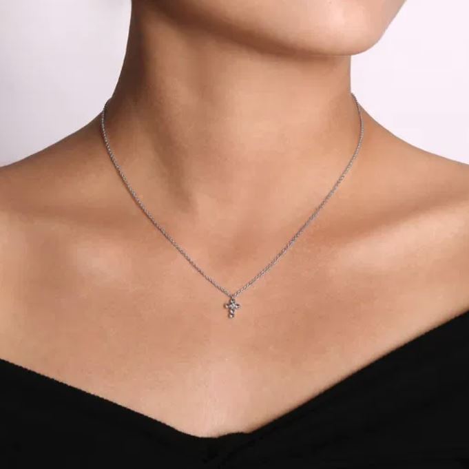 Delicate, meaningful, and designed for everyday wear, this 925 sterling silver beaded diamond cross necklace from the Gabriel & Co. Bujukan Collection brings together timeless symbolism and modern elegance.