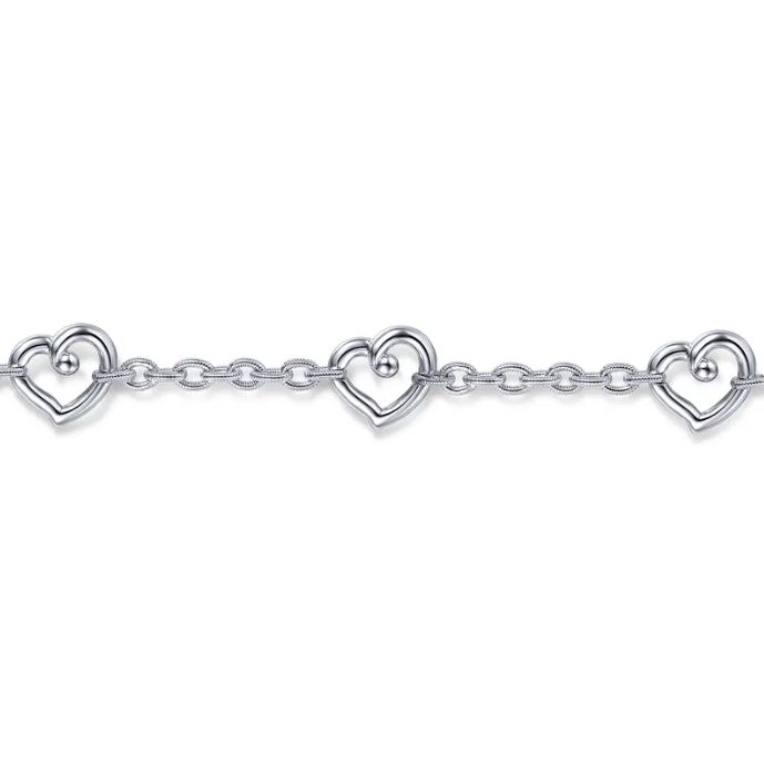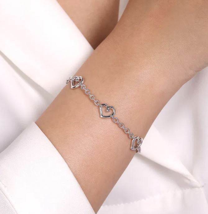 Delicate and timeless, our 925 Sterling Silver Heart Station Chain Bracelet features dainty heart accents spaced along a fine chain for a subtle, romantic touch. Perfect for everyday wear or layering, this elegant piece adds a hint of shine and charm to any look.