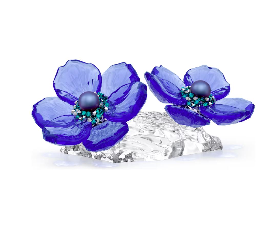 Celebrating the delicate beauty of grounded nature, these sweet anemone blooms can add a botanical touch to your décor. The two flowers are precisely cut with 455 facets and reveal vivid blue petals along with shimmering centres that include iridescent Swarovski Crystal Pearls. Create your own inspired displays by combining this creation with other pieces from the same family. Decoration object. Not a toy. Not suitable for children under 15.