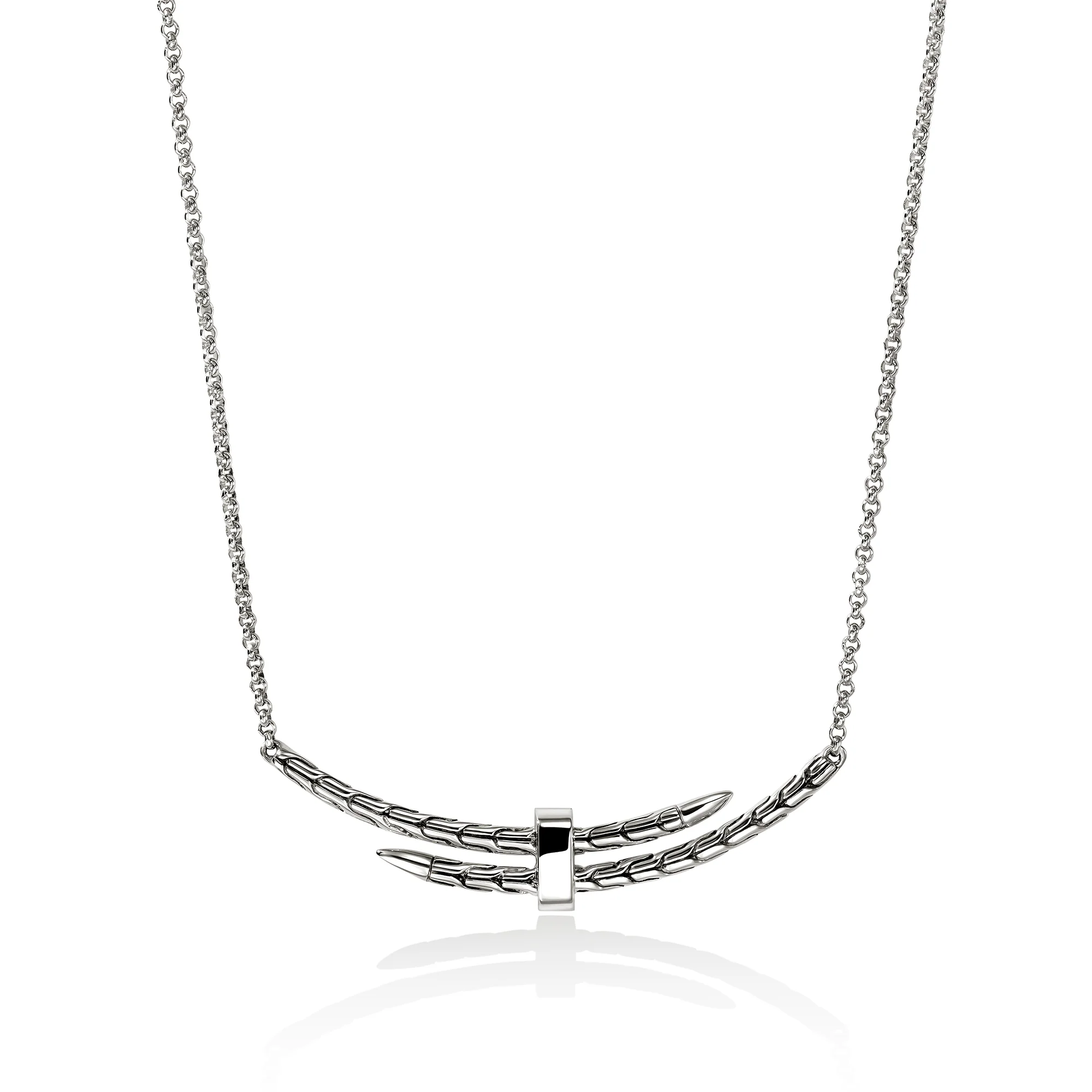 Elegance and edge. This finely detailed necklace features our hand-carved Spear design on a delicate rolo chain. Artisan handcrafted in reclaimed sterling silver with ethically sourced diamonds—set by hand in a micro-pavé, for maximum brilliance.