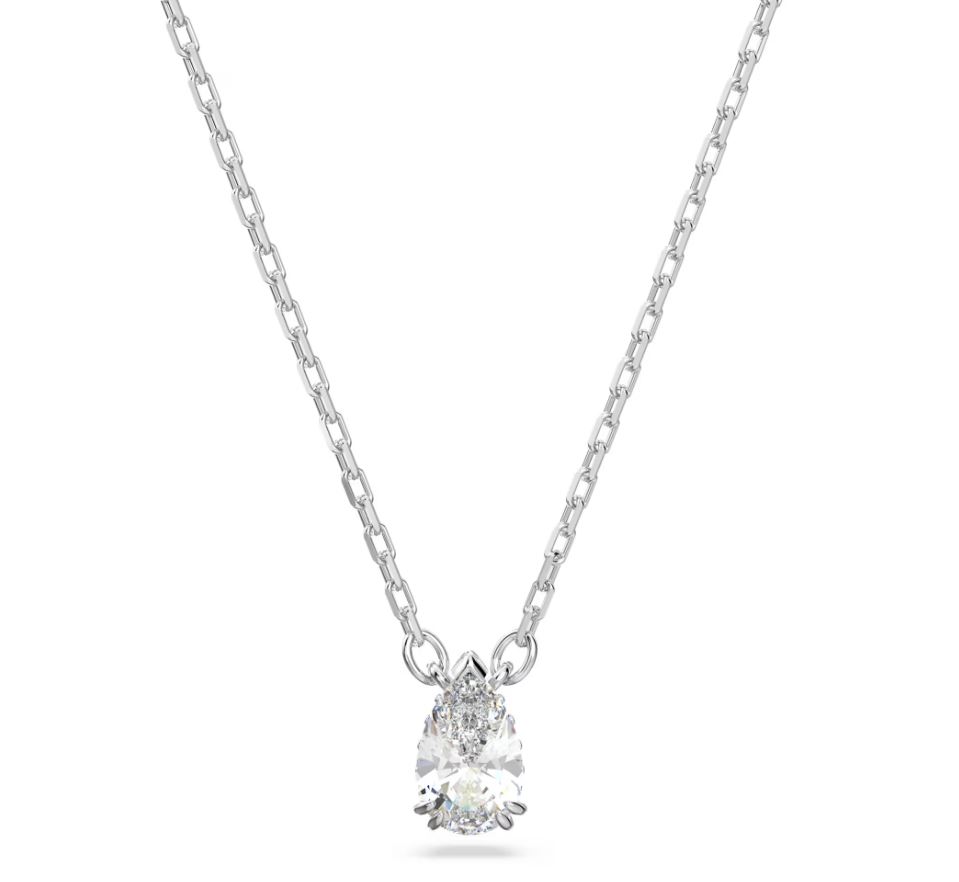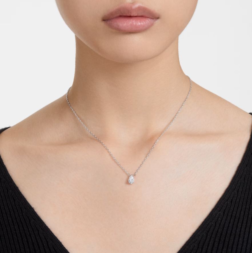 Stilla pendant Pear cut, White, Rhodium plated