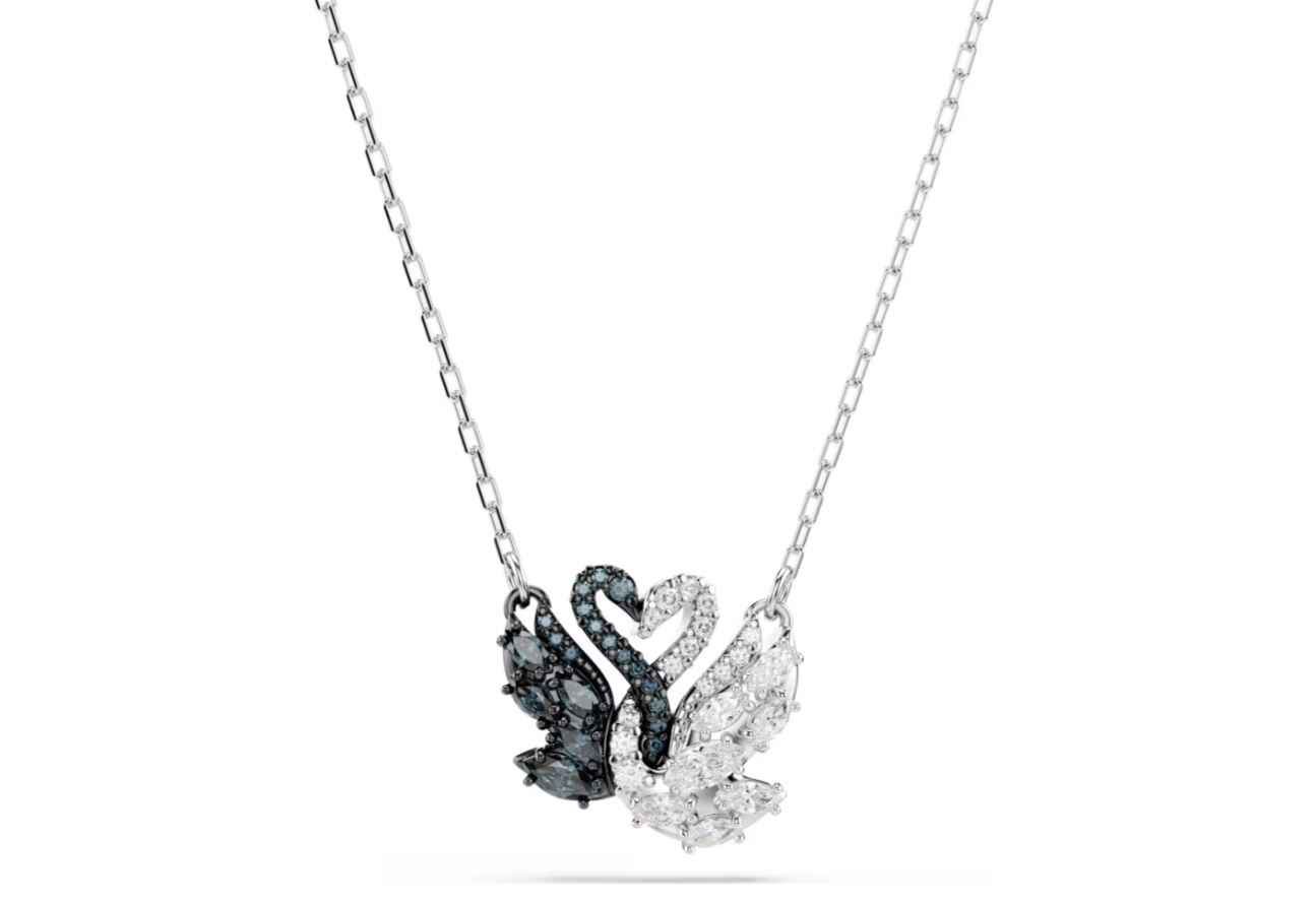 Celebrating Swarovski’s eternal emblem of love and beauty, this swan pendant will infuse any outfit with elegance. Suspended from a delicate chain, the central motif showcases two intertwined swans, in rhodium and ruthenium plating, with an all-over decoration of black and white Swarovski Zirconia in round and marquise cuts. A beautiful example of Swarovski savoir-faire that will remain forever timeless.