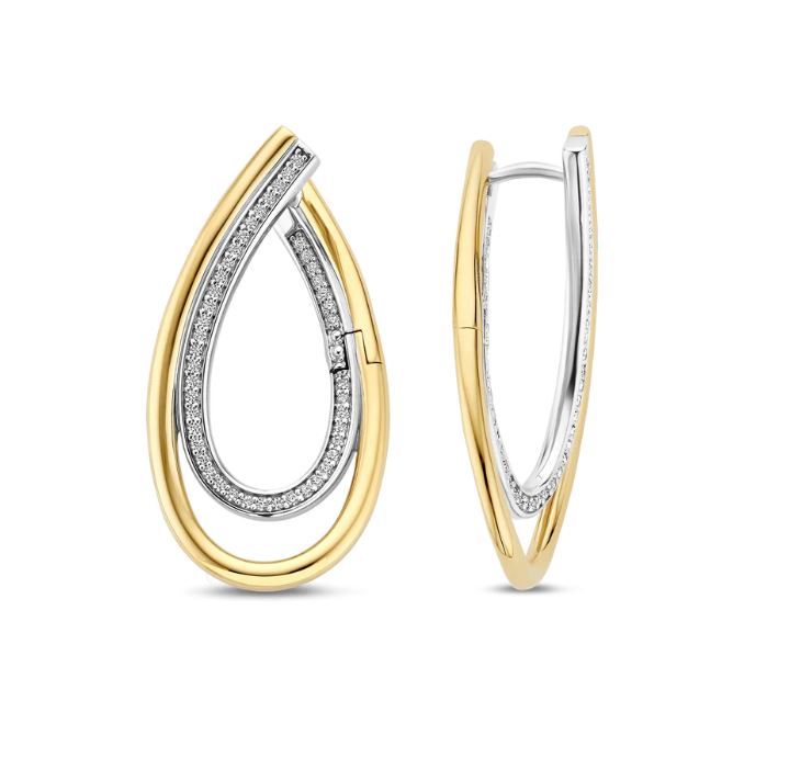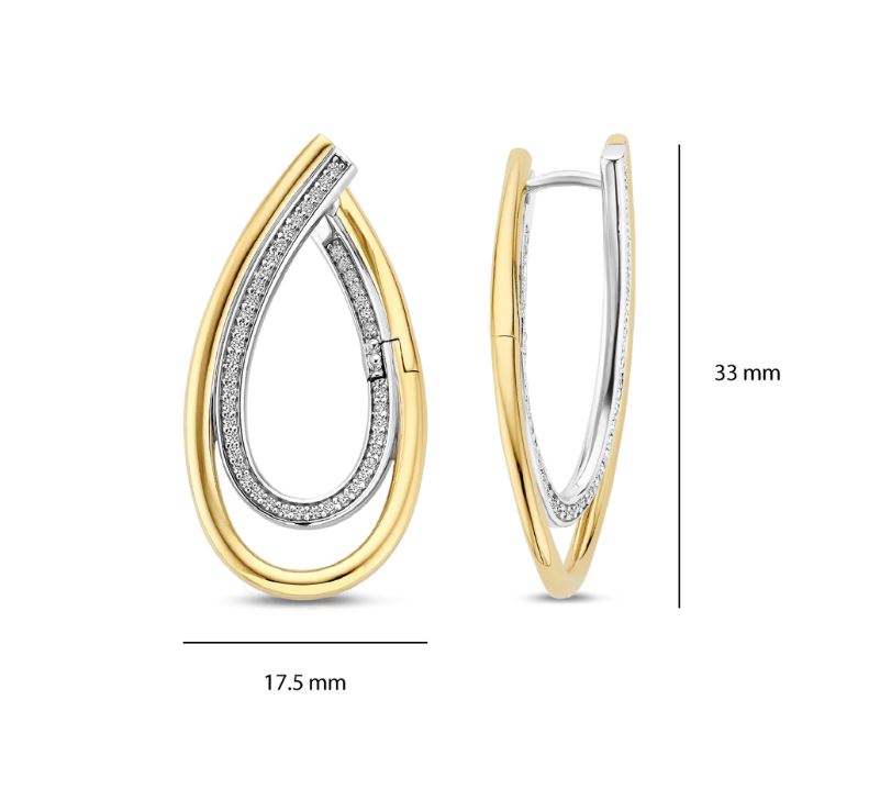 The distinctive closure curves elegantly across the ear, adding depth and a subtle dynamic effect to the design. Thanks to their open, organic silhouette, the earrings feel light and graceful while maintaining a strong presence. These 18k gold-plated zirconia earrings are perfect worn solo as a stylish accent or combined with other silver or gold-plated jewellery. 78051ZY Luxury Stone earrings