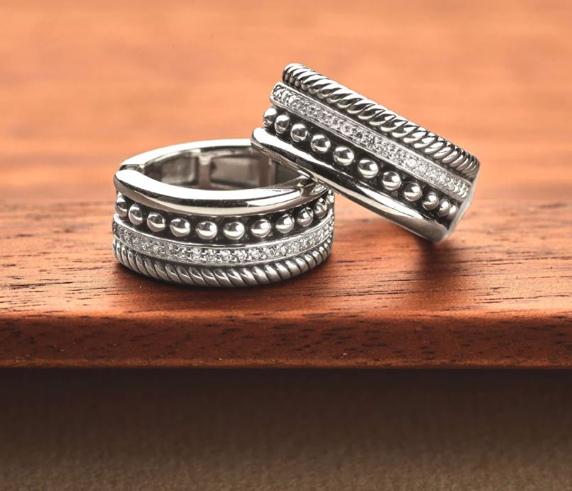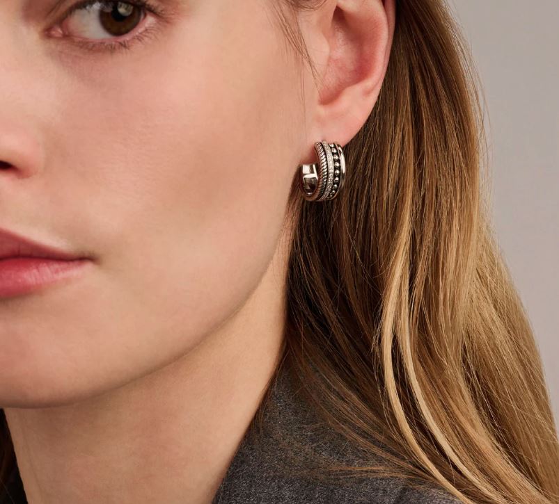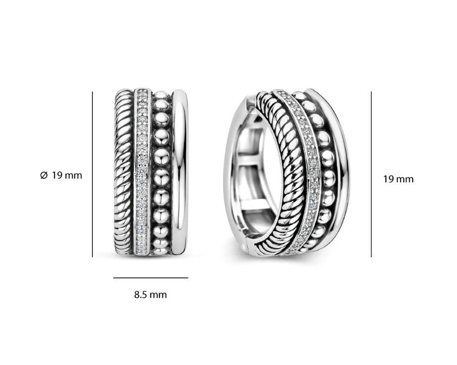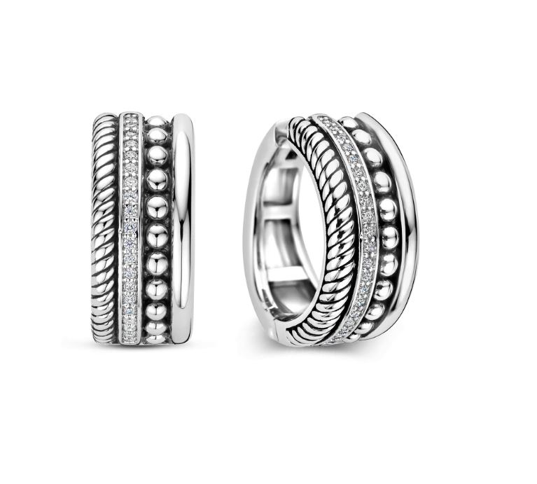 Thanks to their larger size and layered detailing, these silver hoops strike the perfect balance between bold and elegant. The contrasting textures enhance one another, adding character, while the zirconia stones introduce a subtle sparkle. These sterling silver statement earrings are ideal worn solo, instantly adding a powerful and stylish finishing touch to any look. 78059ZI Structures earrings