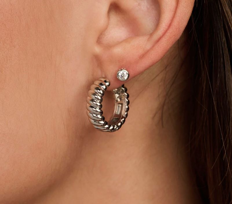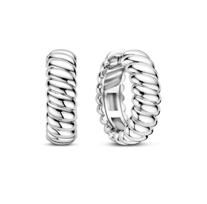 With their solid shape and timeless design, these silver hoops create a refined statement without appearing excessive. The ribbed finish adds texture and depth, making them strong whether worn alone or paired with other silver jewellery. A versatile addition to any jewellery collection. 78066SI Vintage earrings