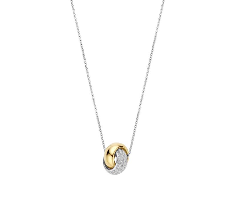 This Bold Zirconia Crossover necklace is crafted from high-quality 925 sterling silver and features a strong, sculptural design. The crossover element consists of two interwoven shapes: one 18k gold-plated circle and one circle set with sparkling zirconia stones. This combination creates refined contrast and an elegant play of light. The intertwined form symbolises connection, adding deeper meaning to the design.