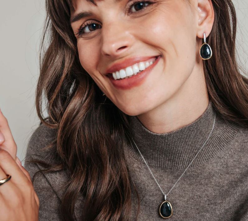 Discover sleek sophistication with this TI SENTO gold-plated silver Pendant 6846BY. A polished pebble of deep-black stone is embraced by a radiant yellow-gold bezel, its organic outline lending soft femininity to the bold hue. The refined drop hangs from a platinum-plated bail pavé-set with brilliant-cut white cubic zirconia, creating a crisp play of light against the inky centre. Suspended on a delicate sterling-silver chain, the pendant sits gracefully —wear it solo for graphic impact, or layer it with shorter chokers for a curated stack. Nickel-free and hypoallergenic. The pendant comes with a dainty silver chain necklace.